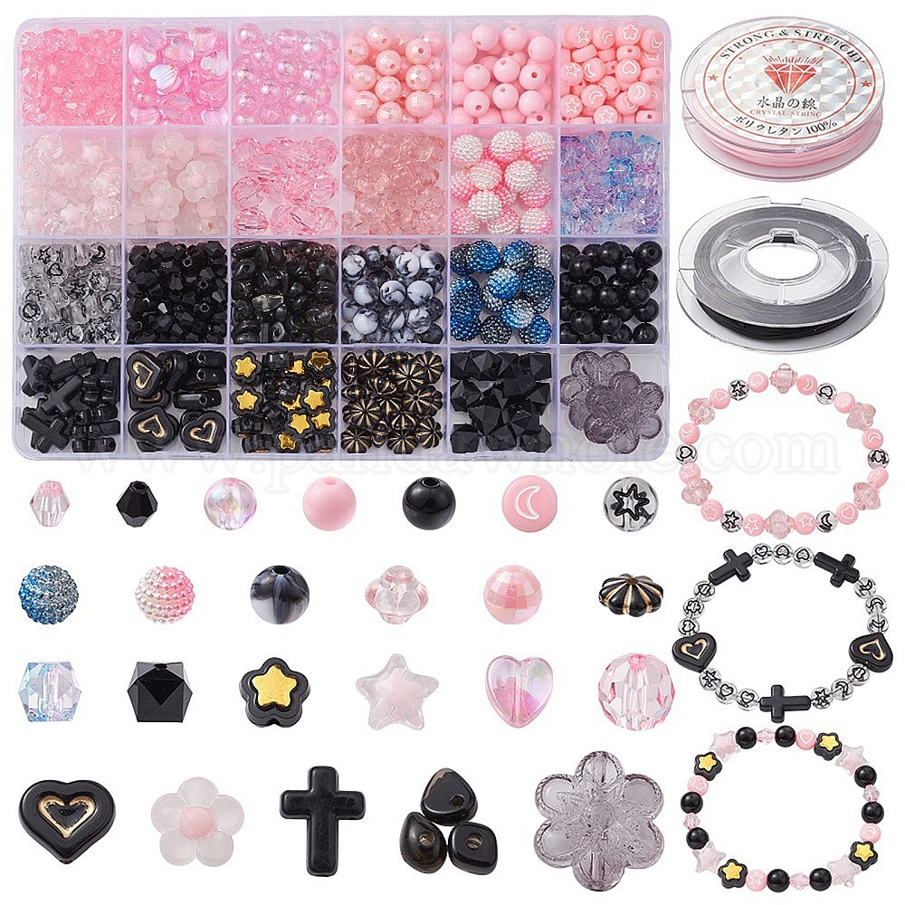 Набор для изготовления браслетов своими руками, в том числе акриловые бусины, эластичная струна, биконус, сердце, многоугольник, фонарь, звезда, куб и цветок