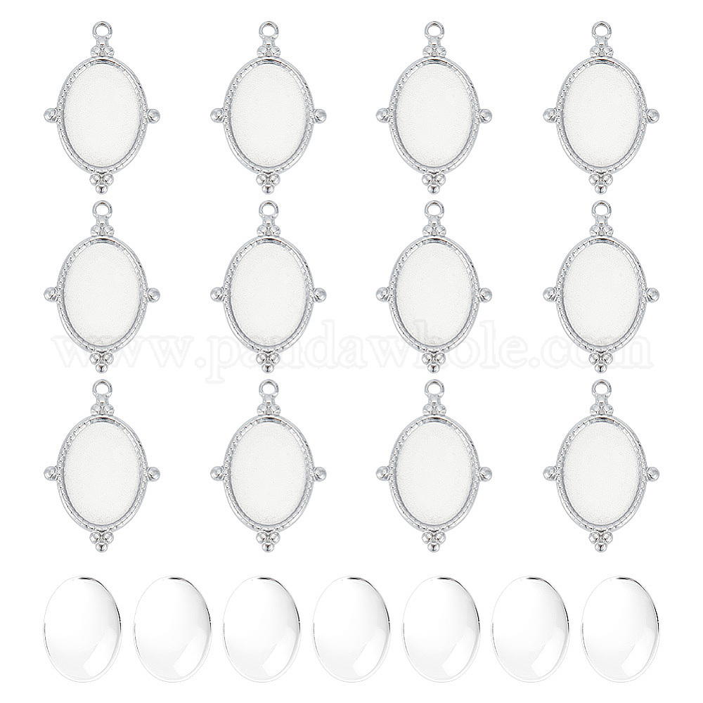 Набор для самостоятельного изготовления овального кулона, в том числе 304 подвеска из нержавеющей стали с кабошоном, Кабошоны из стекла