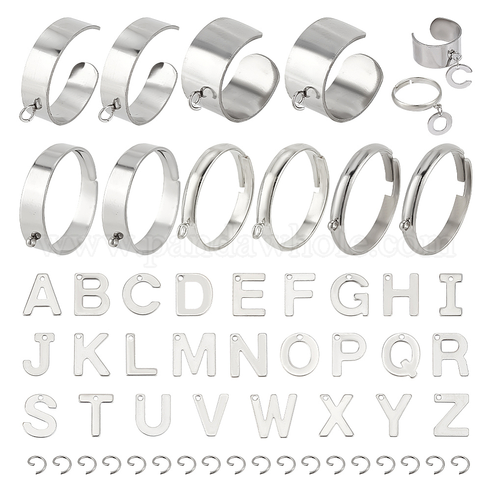 Набор для самостоятельного изготовления кольца с заглавной буквой алфавита, включая 304 кольцевые основания из нержавеющей стали, алфавит талисманы, Кольца прыжок (02NEB7)