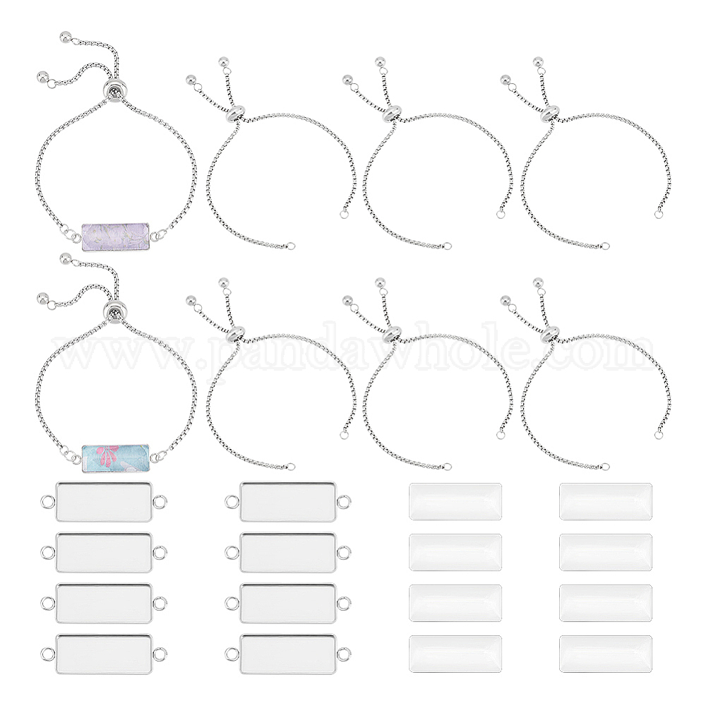 Набор для самостоятельного изготовления браслета из прямоугольного купола, включая 304 настройки разъема кабошона из нержавеющей стали и изготовление браслета-слайдера, Кабошоны из стекла