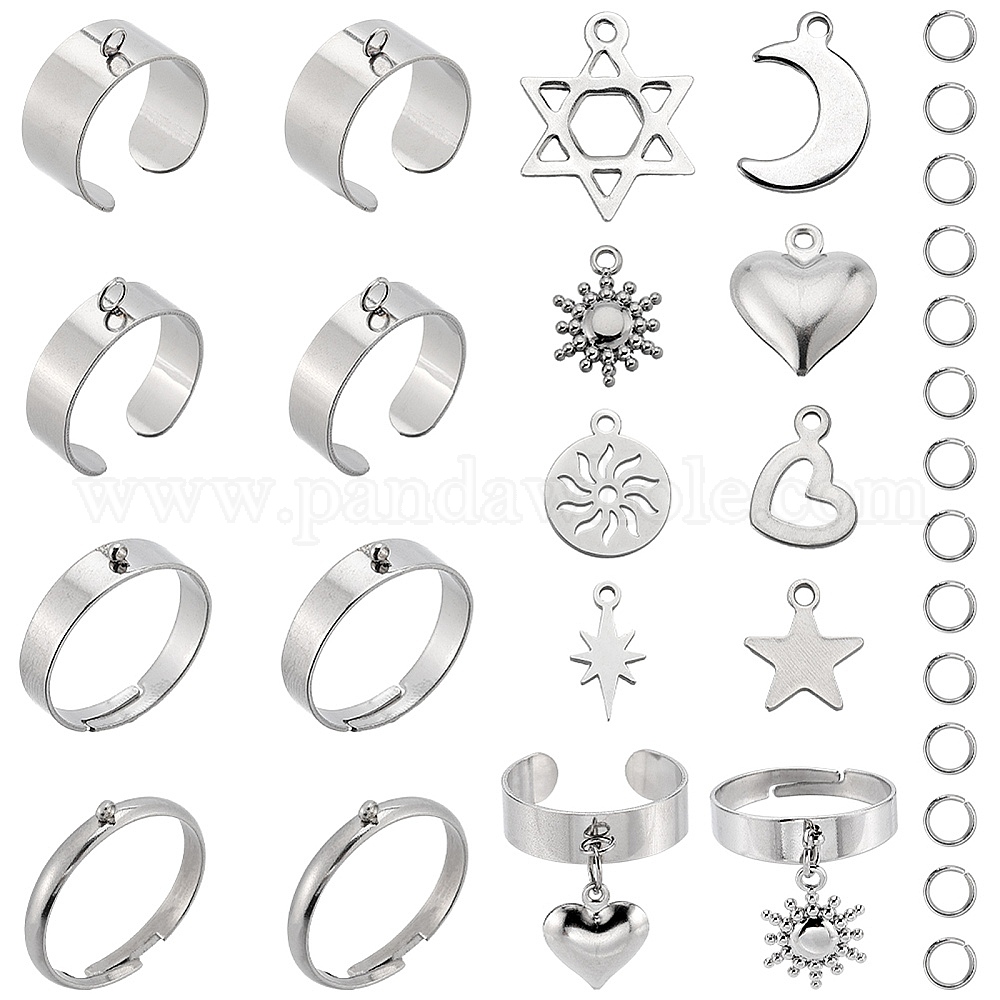 Набор для самостоятельного изготовления кольца-подвески, включая 304 основания для колец-петлей из нержавеющей стали, переходные кольца и подвески, звезда Давида, луна, звезда и солнце