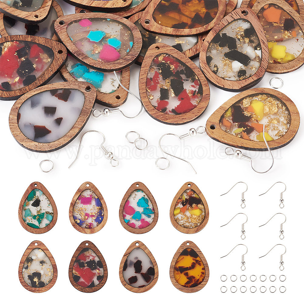 Набор для изготовления серег своими руками, включая подвески из каплевидной смолы и дерева, Латунные крючки для сережек, Железные соединительные колечки (02NKXS)