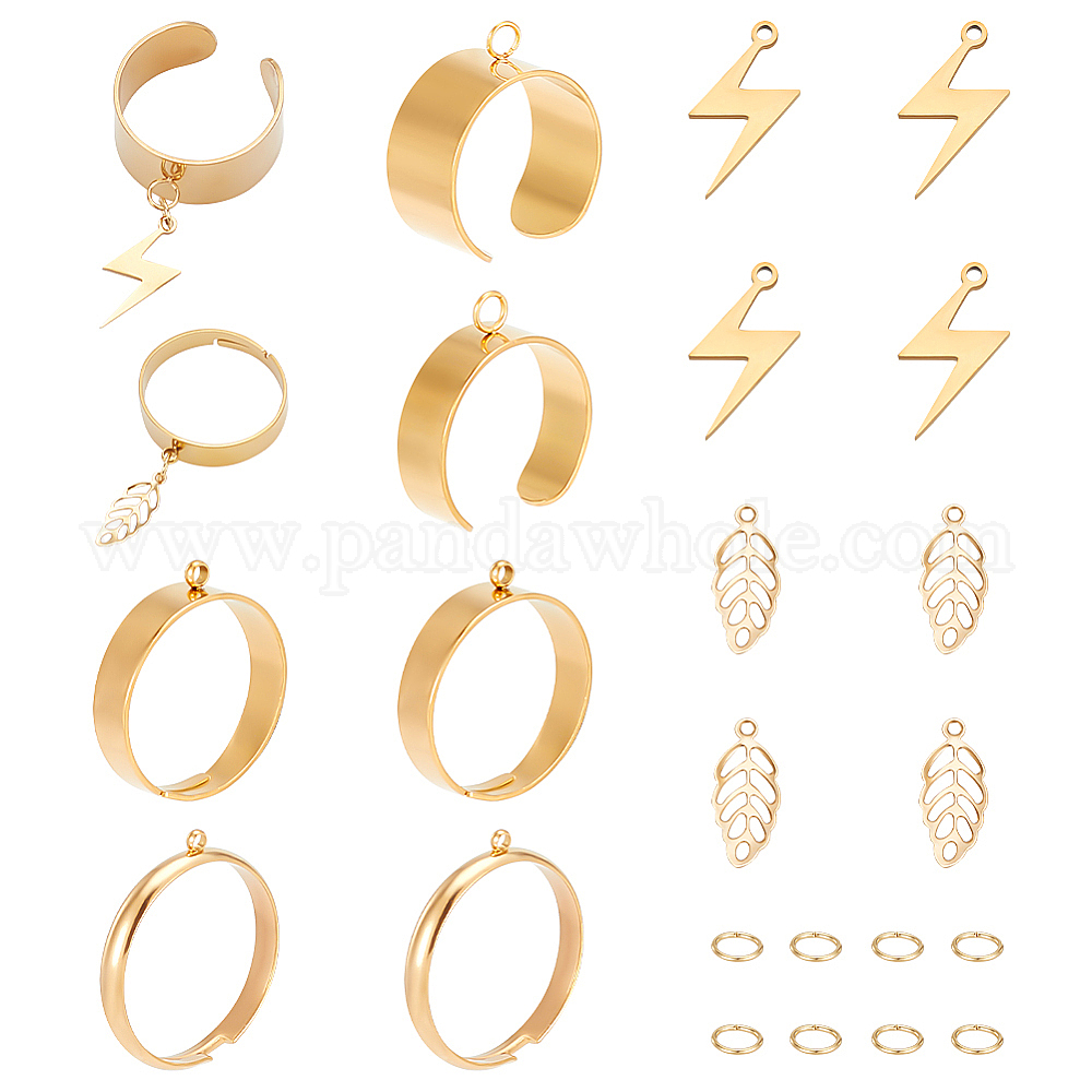 • Золотой Набор для самостоятельного изготовления регулируемого кольца-шарма, включая 304 петлевое основание из нержавеющей стали, 201 прелести нержавеющей стали, лист и молния, золотые, 26 шт / коробка