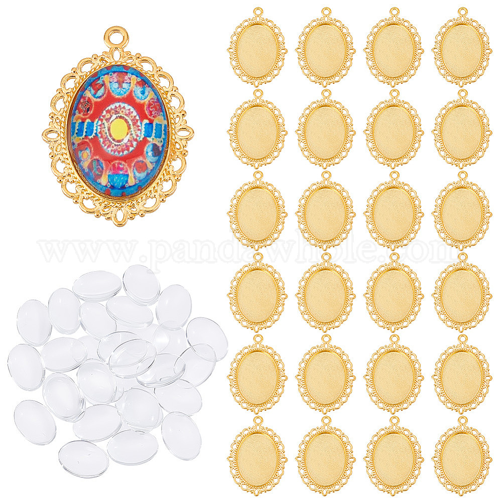 Набор для самостоятельного изготовления овального кулона, в том числе подвеска в тибетском стиле с подвеской в виде кабошона, Кабошоны из стекла