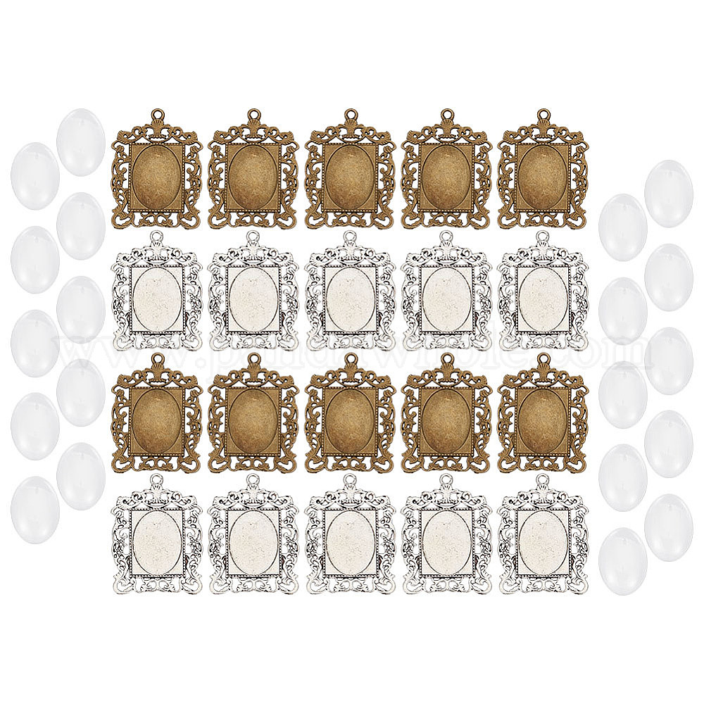 • Антично-бронзовый и Антично-серебристый Набор для самостоятельного изготовления прямоугольного кулона, в том числе подвеска в тибетском стиле с подвеской в виде кабошона, Кабошоны из стекла, античная бронза и старинное серебро, 40 шт / коробка