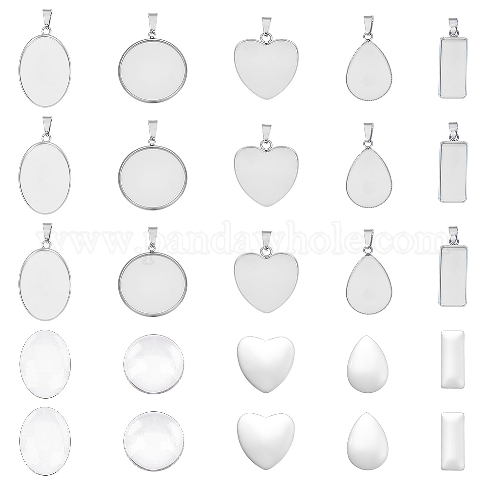 Набор для изготовления заготовок подвески своими руками, в том числе 304 подвеска из нержавеющей стали с кабошоном, Кабошоны из стекла, сердце, овал, слеза и прямоугольник