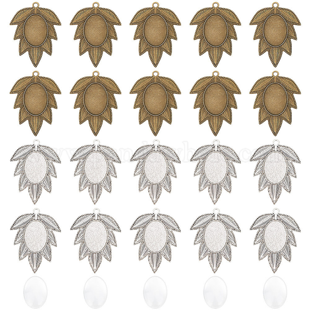 • Антично-бронзовый и Антично-серебристый Набор для самостоятельного изготовления подвески в виде листа, в том числе подвеска в тибетском стиле с подвеской в виде кабошона, Кабошоны из стекла, античная бронза и старинное серебро, 52x40.5x3 мм, отверстие : 3 мм