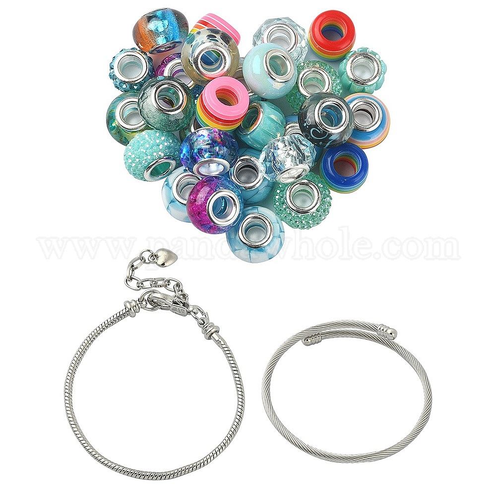 Наборы для изготовления браслетов в европейском стиле своими руками, включая акрил, смолу и полимерную глину, европейские бусины со стразами, изготовление браслетов-манжет из сплава и латуни