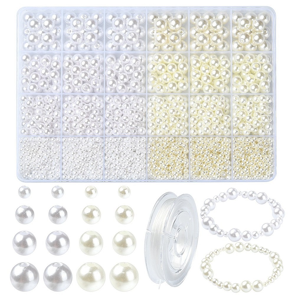 Набор для изготовления браслета из искусственного жемчуга своими руками, включая круглые бусины из АБС-пластика, эластичная нить