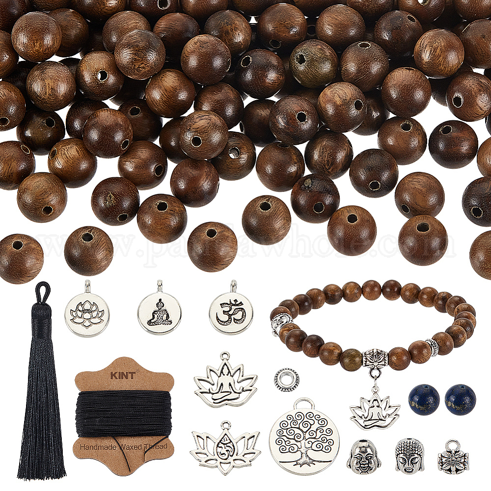 Набор для изготовления подвесных украшений своими руками, включая большие подвески с кисточками из полиэстера, Подвески из сплава с головой лотоса и Будды, натуральные бусины из лазурита и сандалового дерева