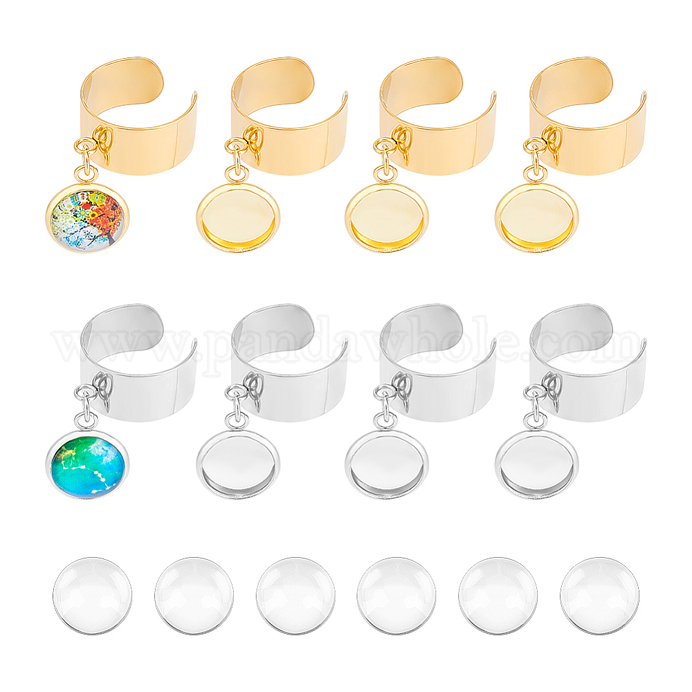 Набор для изготовления колец-манжет с пустым куполом своими руками, включая 304 кольца из нержавеющей стали, Кабошоны из стекла