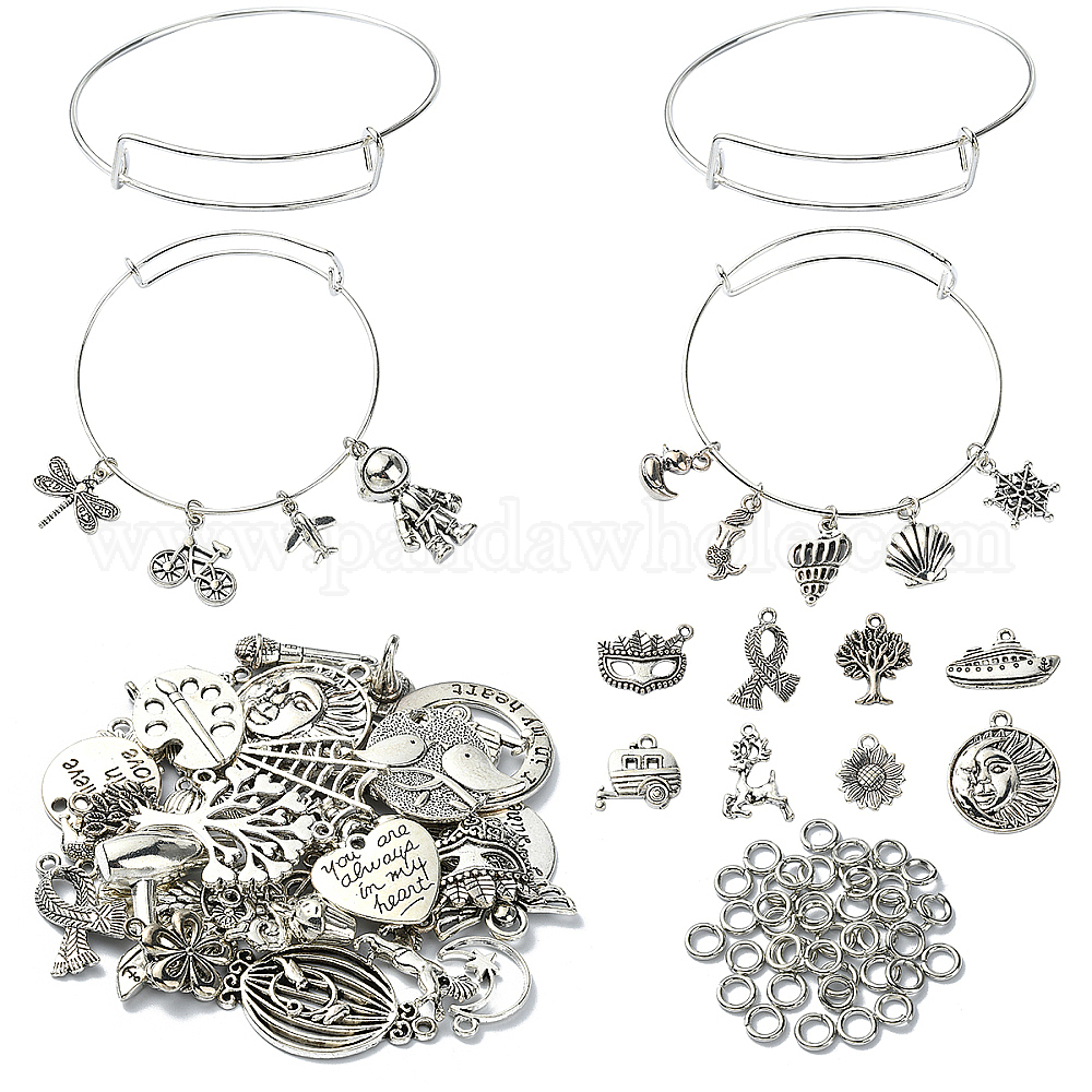 • Античное Серебро & Серебро Удлиняемый браслет своими руками с набором для изготовления подвесок, включая изготовление железных браслетов, Подвески из сплава , тыква, сердце, дерево, ракушка, слон и рождественский олень, старинное серебро и серебро, 105 шт / пакет