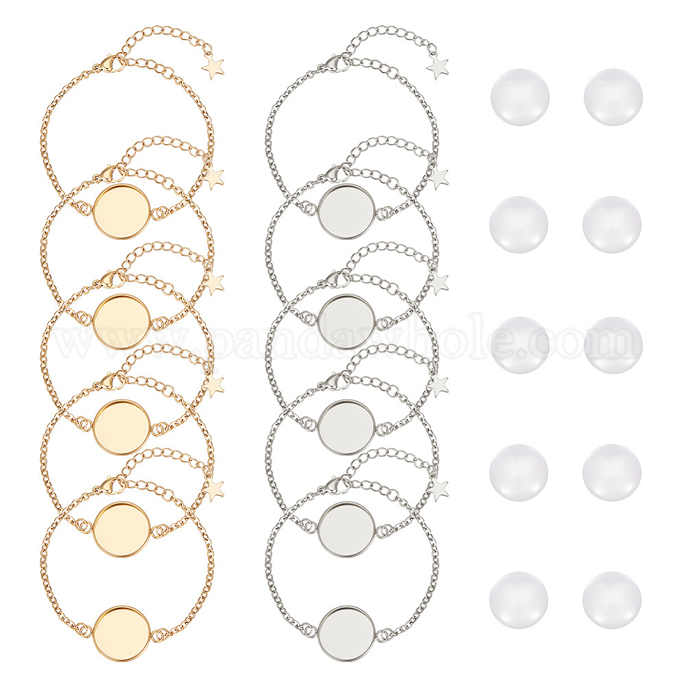 • Золотой & Цвет Нержавеющей Стали Набор для изготовления браслета из звеньев купола своими руками, включая 304 настройки браслета из нержавеющей стали, Кабошоны из стекла, золотые и нержавеющая сталь цвет, изготовление браслета: 140мм, лоток : 14 мм