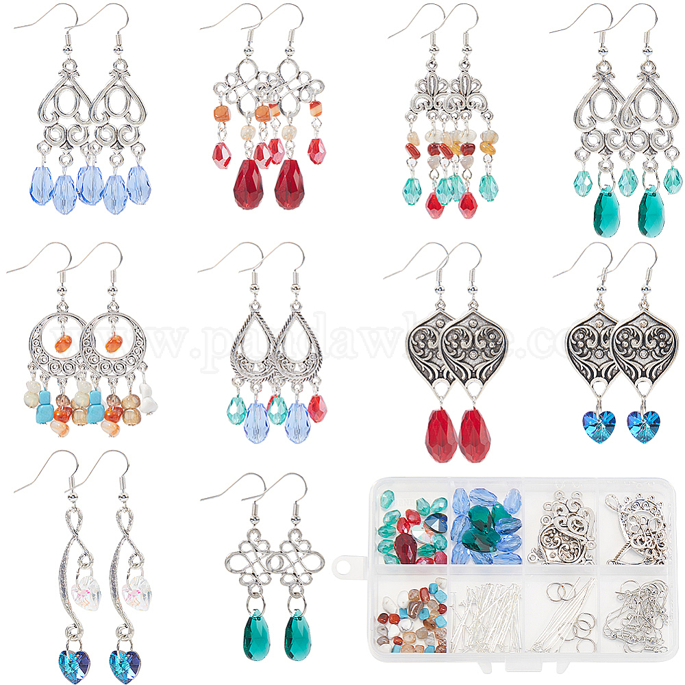 Набор для самостоятельного изготовления сережек-люстр из сплава в китайском стиле, серьги-капли из смешанных натуральных и синтетических драгоценных камней (02Q5Z2)