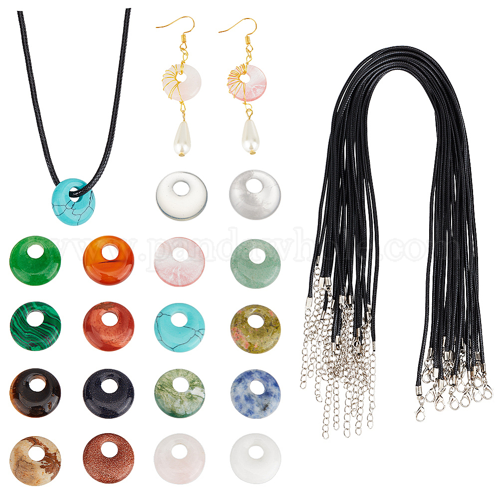 Набор для самостоятельного изготовления ожерелий с подвесками из натуральных и синтетических смешанных драгоценных камней в форме диска Пи, с искусственной кожи шнуры