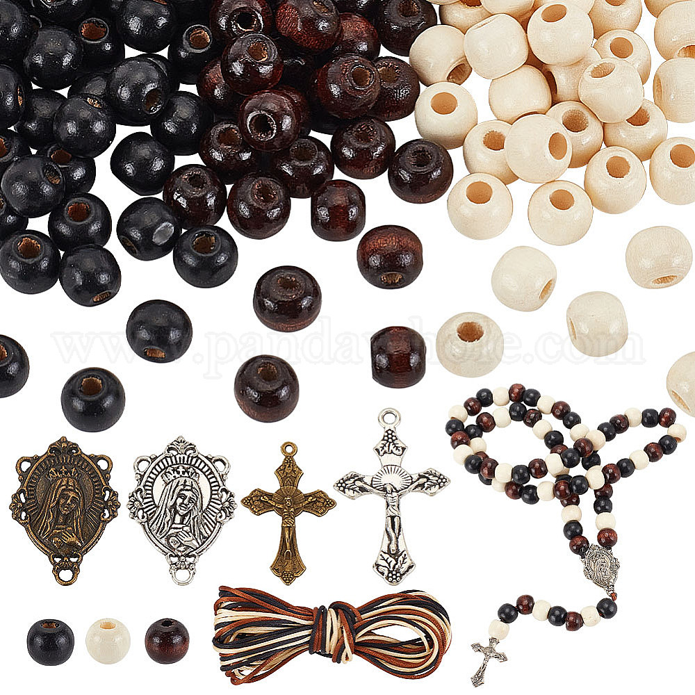 Деревянные четки бисерные ожерелья браслеты набор для изготовления, комплект ювелирных изделий из сплава с подвесками в виде креста и Девы Марии