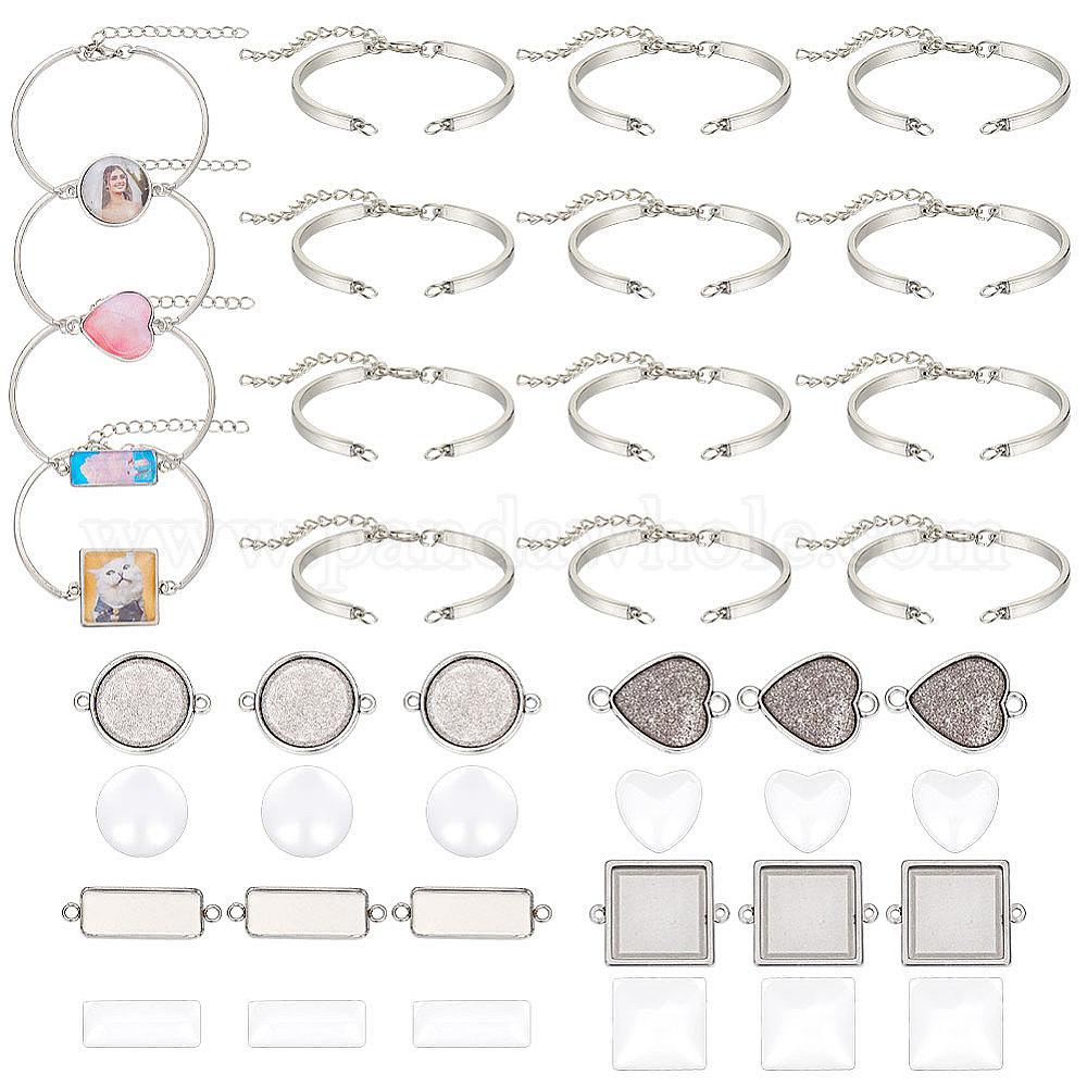 Набор для изготовления браслетов своими руками, включая настройки разъема кабошона из сплава и 304 нержавеющей стали, Прозрачные стеклянные кабошоны, Сплав браслет