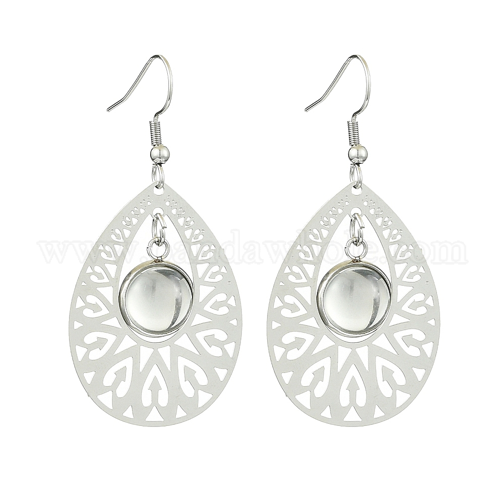 Наборы для изготовления висячих серег своими руками, включая 304 оправы для сережек из нержавеющей стали и прозрачные стеклянные кабошоны