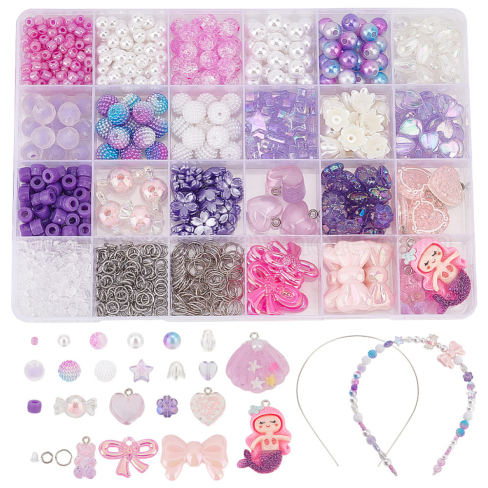 Набор ювелирных изделий diy, включая пластиковые искусственные жемчужные и акриловые бусины, подвески из смолы и акрила, исследования волос из нержавеющей стали, 304 из нержавеющей стали открыты кольца прыжок