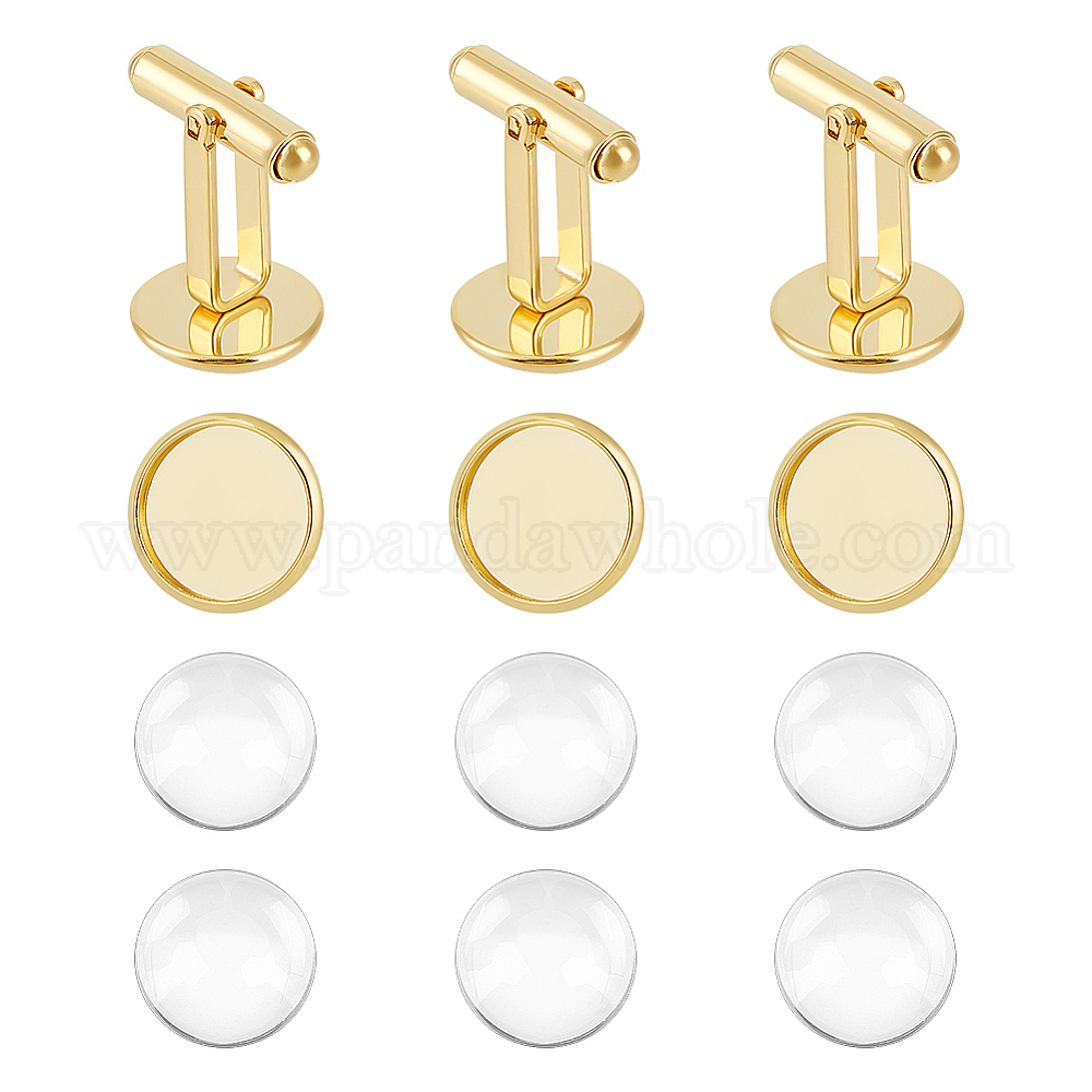 • Золотой Заготовка купола своими руками 304 набор для изготовления запонок из нержавеющей стали, золотые, пуговица на манжете: 26.5x14мм, лоток : 12 мм