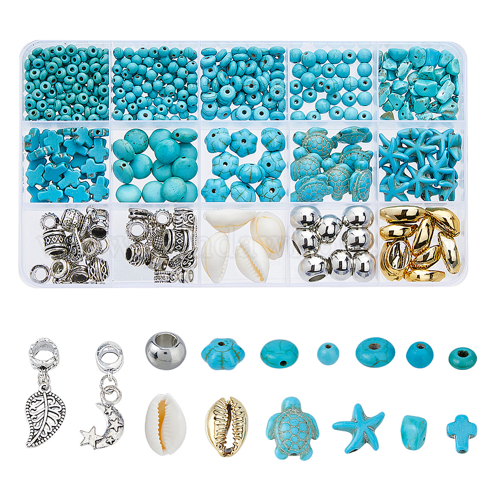 Набор для поиска поделок для изготовления ювелирных изделий, включая синтетическую бирюзу и бусины из натуральных ракушек, сплав европейские подвески с подвесками