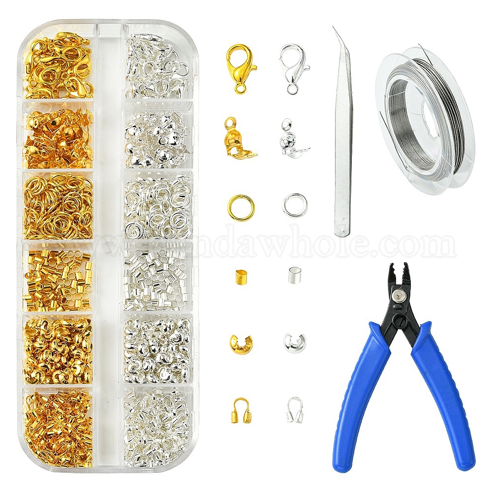 Набор для изготовления украшений из бисера своими руками, в том числе застежки-клешни из цинкового сплава, железные обжимные крышки для бусин, открытые кольца и наконечники для бусин, клещи для обжима из углеродистой стали, Зажимные бусины из латуни