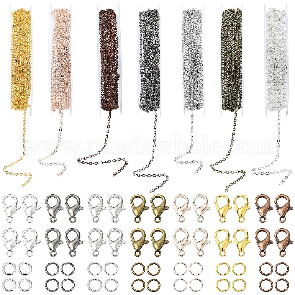 Набор для изготовления ювелирных изделий из ожерелья своими руками, включая латунные кабельные цепи, Карабин-лобстер из цинкового сплава, железа открыты кольца прыжок
