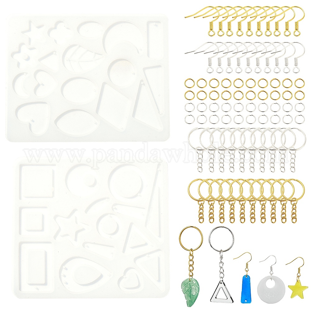 • Золотой & Серебряный Набор для изготовления украшений своими руками, в том числе силиконовые формы, железные крючки для сережек, разрезные кольца для ключей и открытые кольца для прыжков, золотой и серебряный, 6~116x6~105x0.7~4 мм, отверстие : 1~2 мм