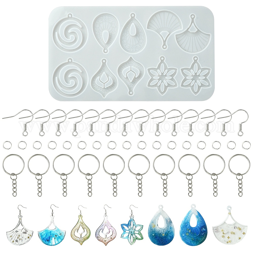 • Платина Набор для изготовления ювелирных изделий из серег с листьями и цветами своими руками, в том числе подвесные силиконовые формы, платина, 6~245x6~140x0.7~6 мм, отверстие : 2~3.5 мм