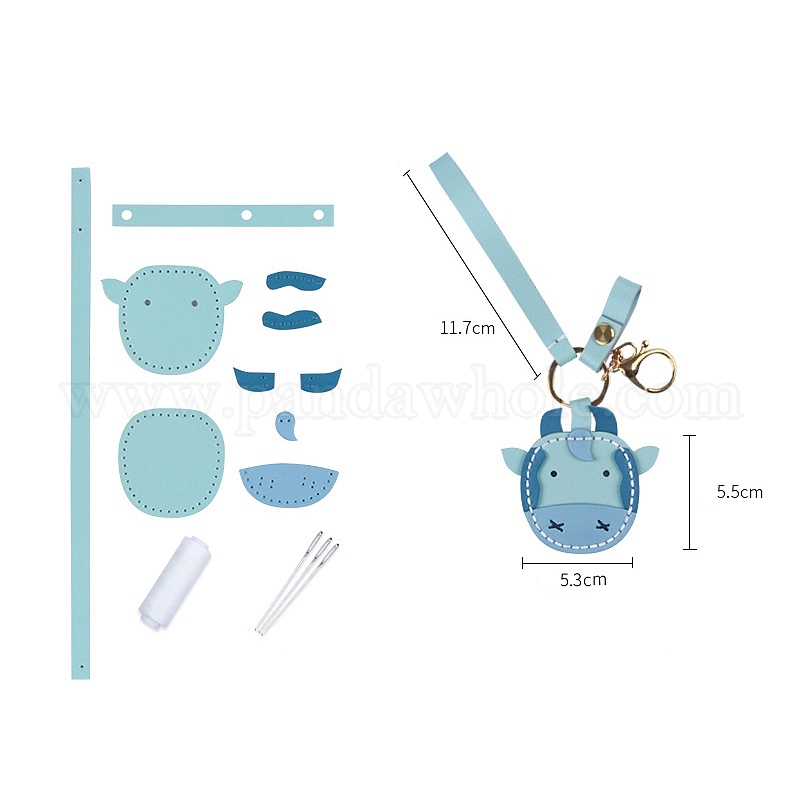 • Небесно-голубой Наборы для изготовления брелоков из кожи крупного рогатого скота своими руками, голубой, 55x53 мм