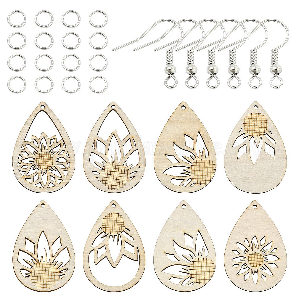 Наборы для сережек своими руками, с необработанными деревянными подвесками-капельками и крючками для сережек