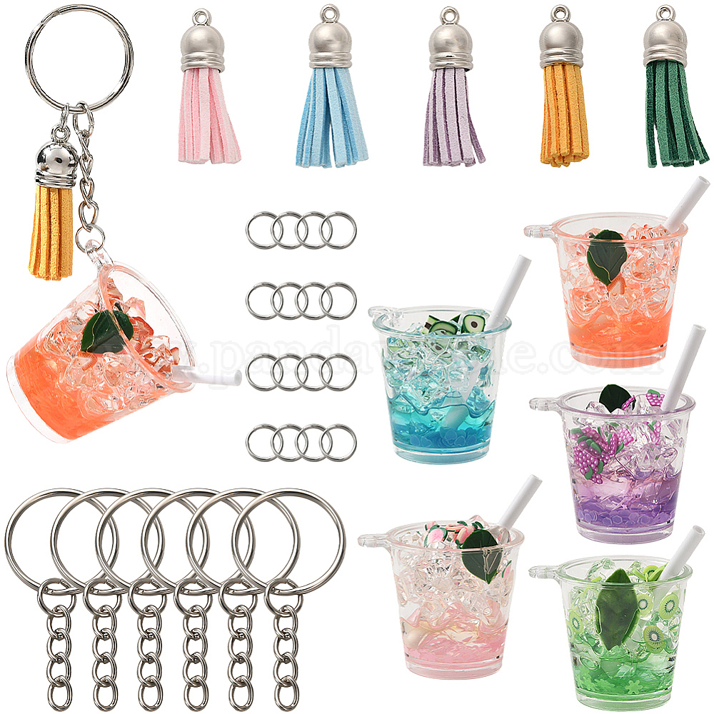 Наборы для ключей, включая большие подвески из прозрачной смолы, Искусственные замши кисточкой подвесные украшения, железные разъемные брелоки и разъемные кольца (031WGW)