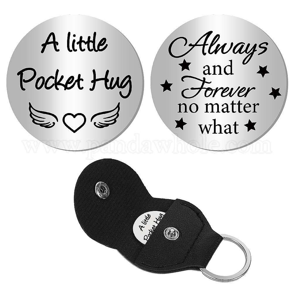 • Сердце Карманный жетон для объятий, набор для изготовления брелока на память о длительных отношениях, в том числе футляр для ключей из искусственной кожи, 201 памятные вдохновляющие монеты из нержавеющей стали, сердце, 107x47x1.3 мм