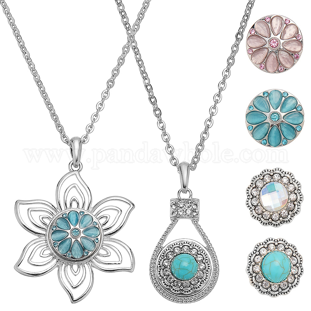 DIY 304 наборы для изготовления ожерелья из тросовой цепи из нержавеющей стали, с подвесками-кнопками из сплава со стразами в виде цветка и капли