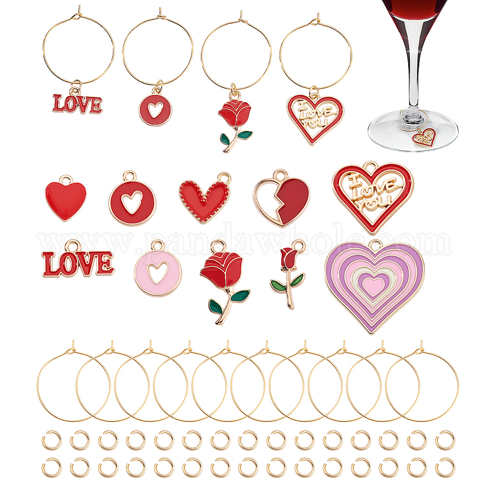 Набор для самостоятельного изготовления подвесок для бокалов ко Дню святого Валентина, в том числе латунные кольца с подвесками для бокалов, 304 из нержавеющей стали открыты кольца прыжок, Подвески из эмали и сплава
