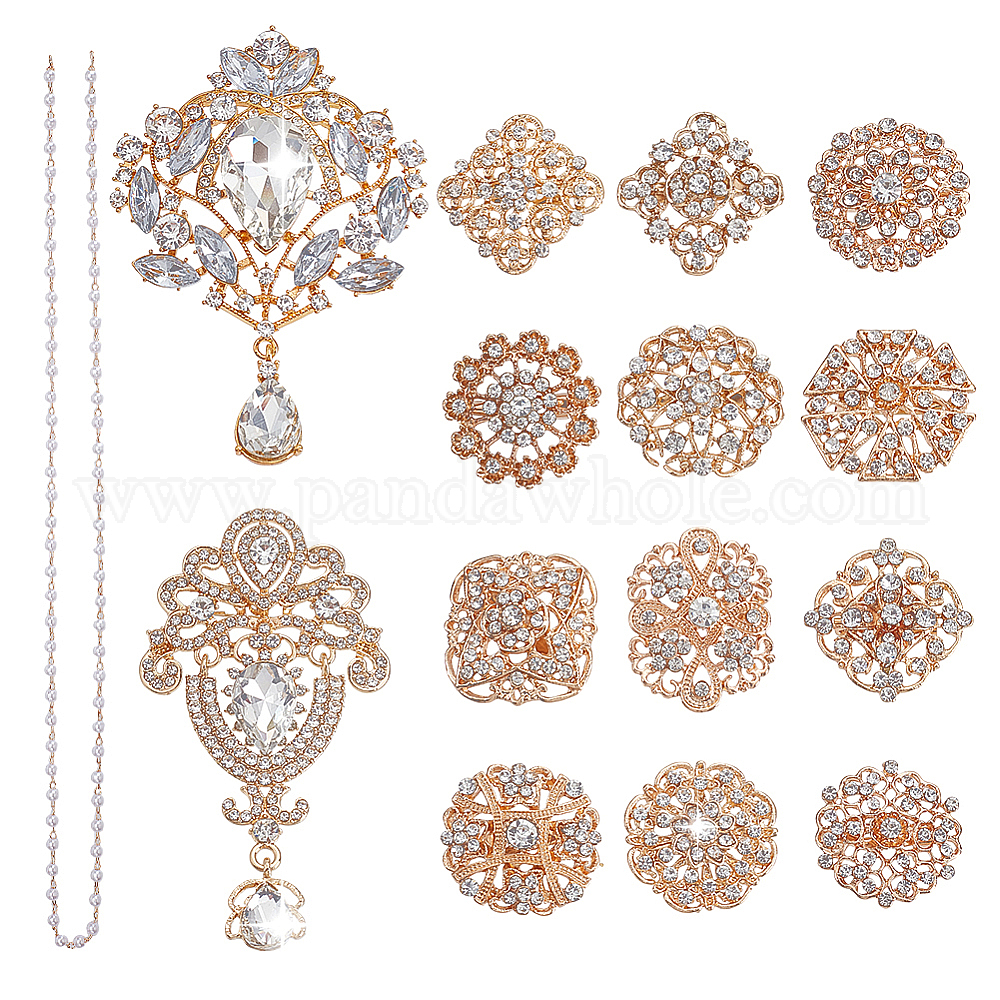 Значки в виде цветов, ромбов и овалов со стразами: 12 стили, 1 шт / стиль, 12шт./пакет;