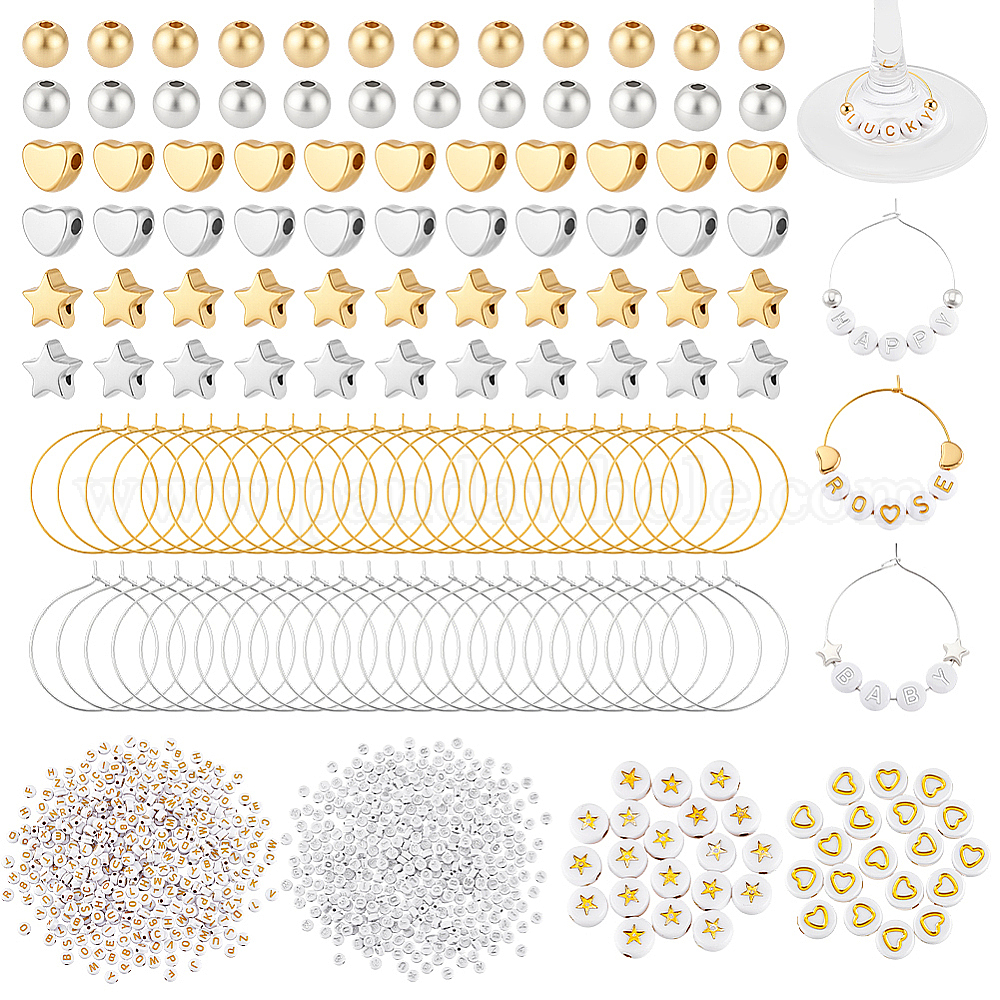 Наборы для самостоятельного изготовления подвесок для бокалов вина, включая латунные серьги-кольца, акриловые бусины и пластиковые бусины ccb