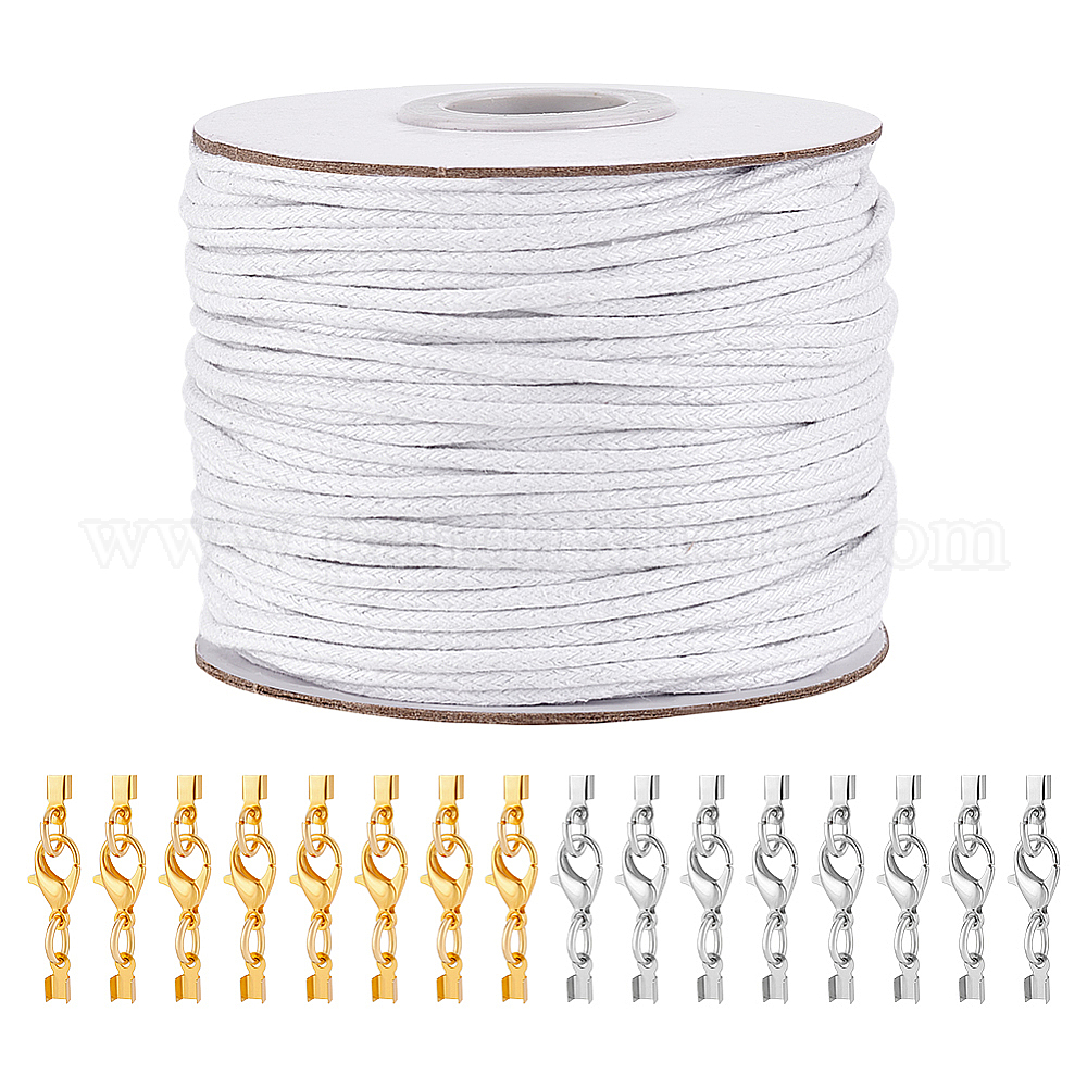 • Белый Комплекты ожерелья diy, включая вощеные хлопковые шнуры и карабины из цинкового сплава, белые, 2 мм, 1 рулон