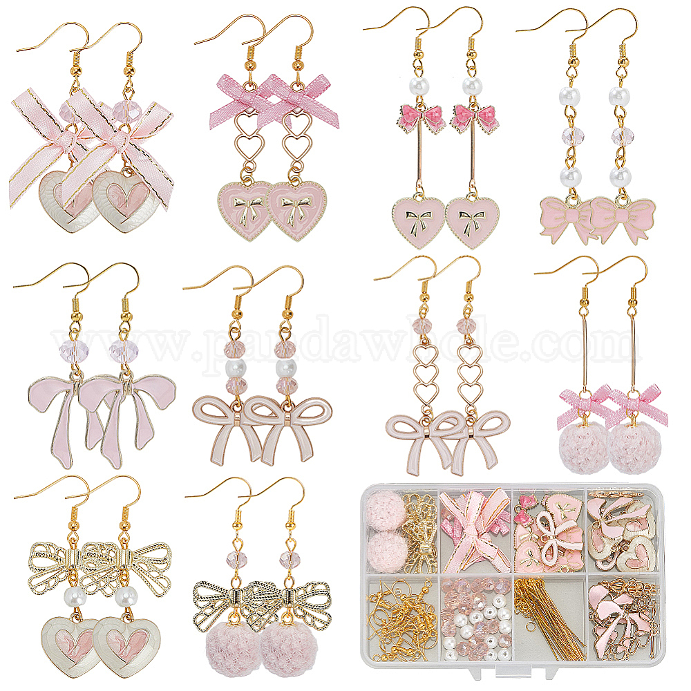 • Pink Наборы для самостоятельного изготовления сережек-бантов, в том числе подвески из сплава эмали, стеклянные бусы и серьги крюк латуни, розовые, 18.5x16 мм, отверстие : 1.8 мм