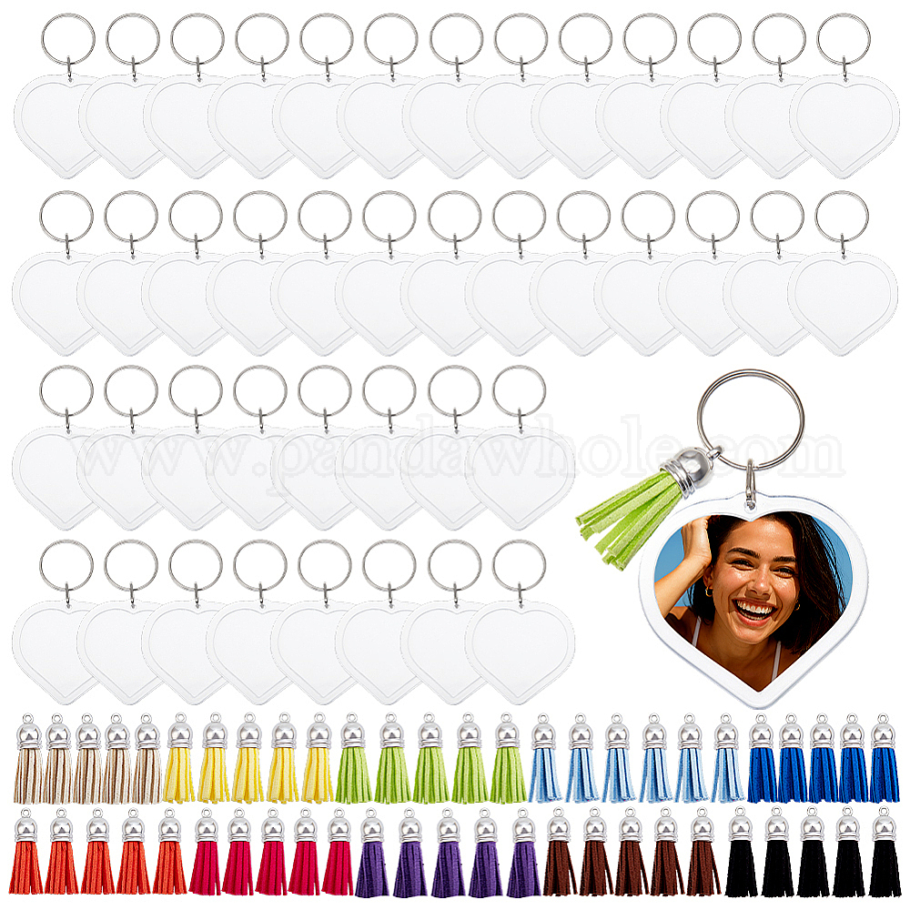 • (52) Непрозрачная лаванда Набор для изготовления брелка своими руками, включая брелок с фоторамкой в форме сердца из акрила, Искусственные замши кисточкой подвесные украшения, разноцветные, 80 мм
