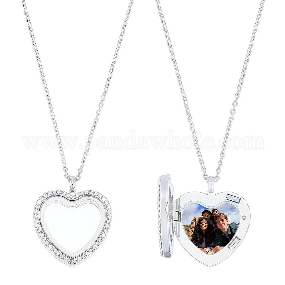 Наборы для самостоятельного изготовления ожерелья с подвеской в форме сердца, включая подвески-медальоны из сплава горного хрусталя и 304 цепочки из нержавеющей стали