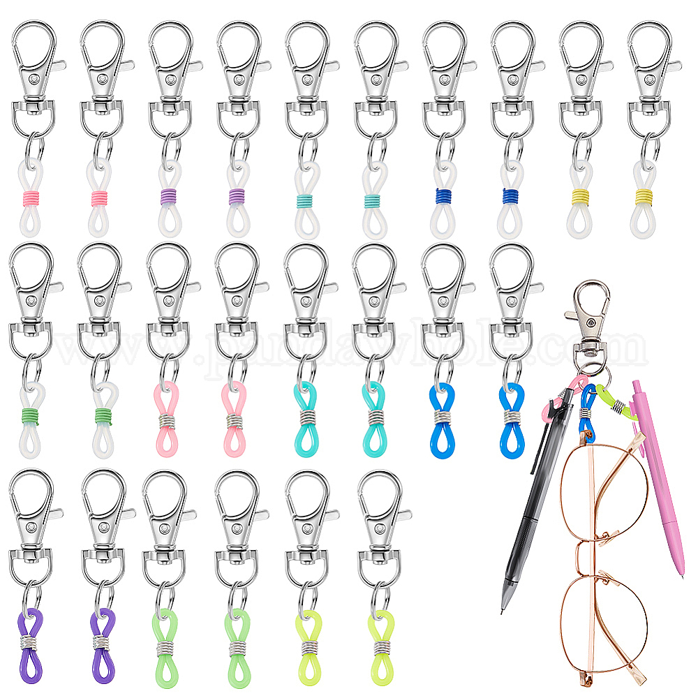 Сделай сам наборы для ключей, включая железные поворотные карабины, 304 брелки из нержавеющей стали, силиконовые наконечники для цепочек для очков
