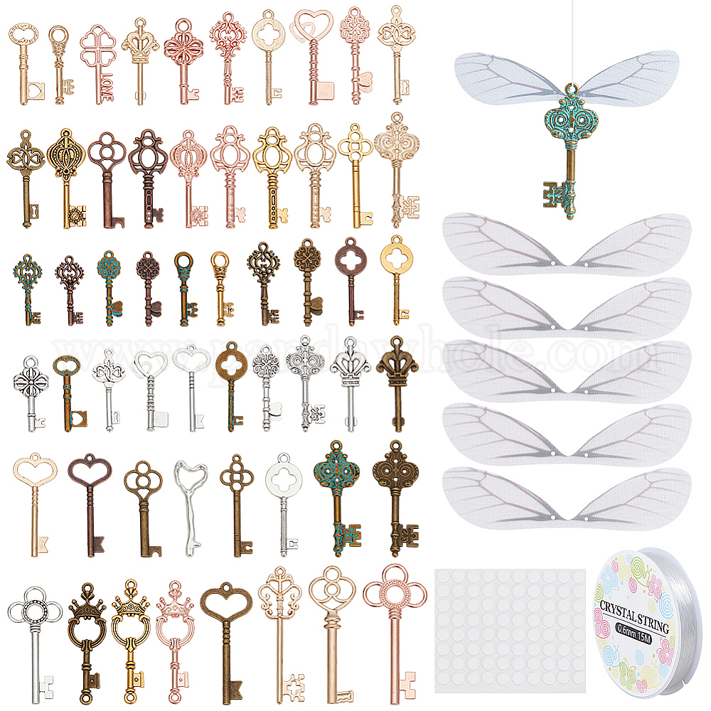 Наборы для изготовления подвесок своими руками, в комплект входит 1 рулон эластичной кристаллической нити, 80шт. органза крыло стрекозы, подвески из сплава в тибетском стиле