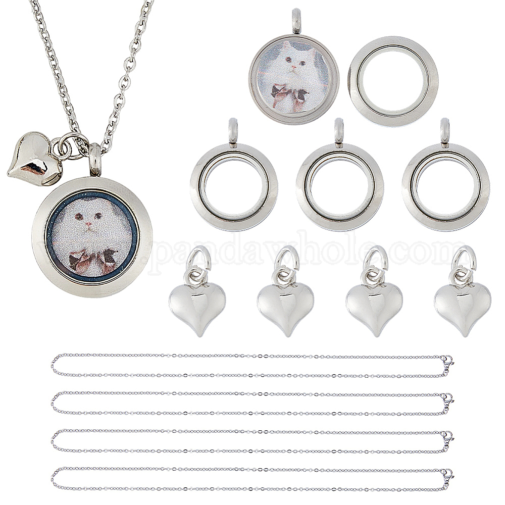 Комплекты ожерелья diy, в том числе 304 ожерелья и медальоны из нержавеющей стали, латунь сердце кулоны