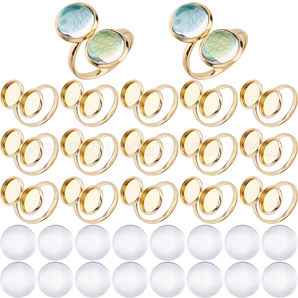 304 открытые кольца манжеты из нержавеющей стали, настройка кольца колодки, Прозрачные стеклянные кабошоны