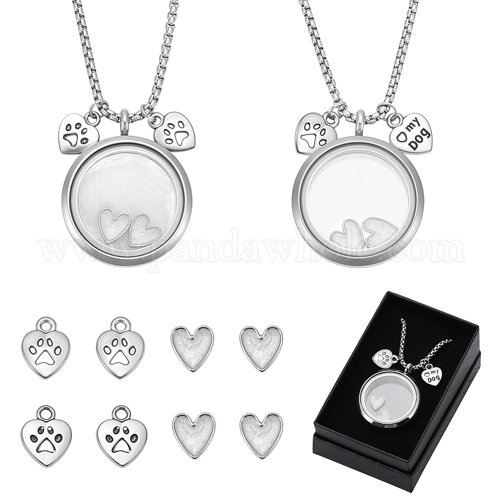 Талисман из сплава, подвески из медальона из нержавеющей стали, сплав эмали кабошоны, 201 коробка из нержавеющей стали цепи ожерелье, картонная бумажная шкатулка для украшений