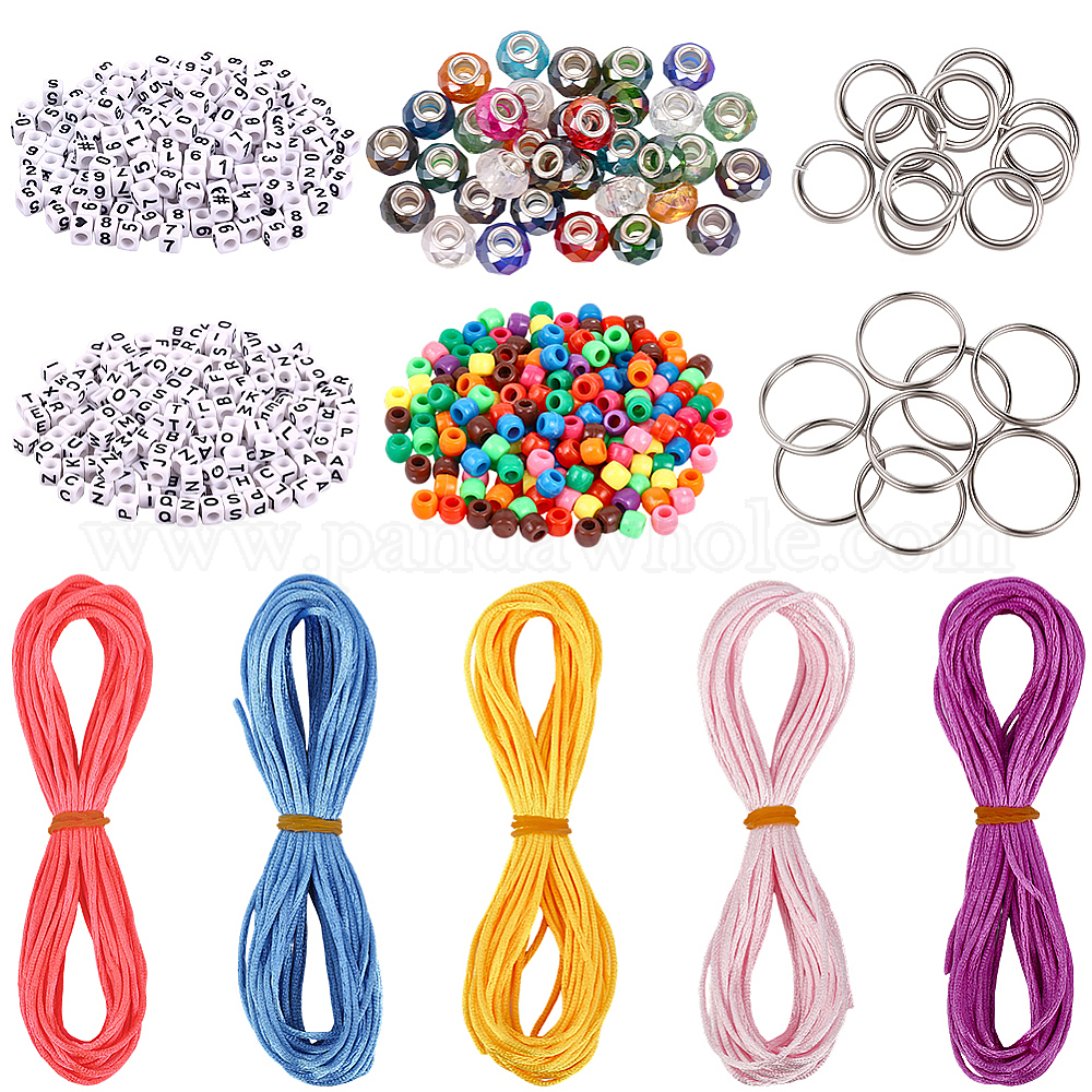 Сделай сам наборы для ключей, включая 304 застежки для ключей из нержавеющей стали и соединительные кольца, пластиковые, стеклянные и акриловые бусины, полиэфирные нити