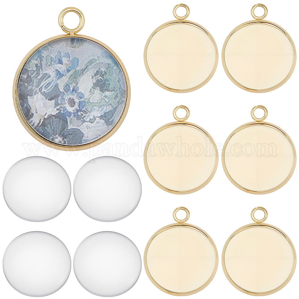 • Настоящее золото 18K Наборы для изготовления плоских круглых подвесок из нержавеющей стали своими руками, в том числе кабошоны из прозрачного стекла, реальный 304 k позолоченный, лоток : 18 мм, 20 мм, отверстие : 27x22x2 мм, 3 шт