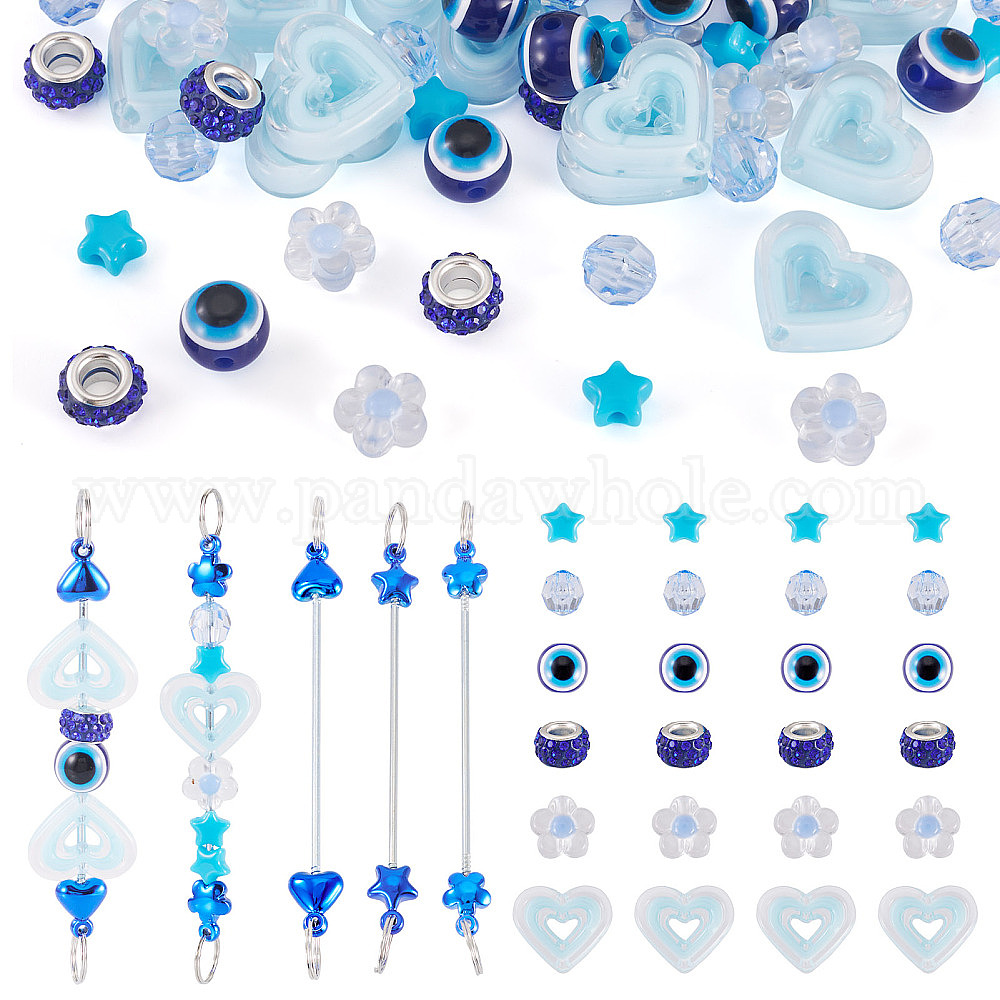 Сделай сам наборы для ключей, в том числе 3шт. брелоков из нержавеющей стали с бусинами, 12шт. круглые бусины из смолы, символизирующие сглаз, 36шт акриловые бусины, 12 шт. Европейские бусины со стразами из полимерной глины