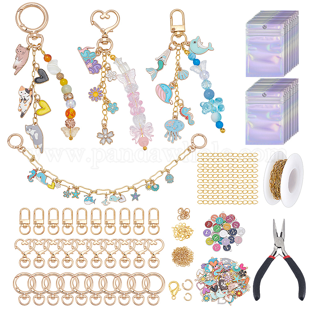 Сделай сам наборы для ключей, в том числе 304 цепочки из нержавеющей стали для скрепок, железные концы, застежки-поворотные из сплава и застежки-карабин, сплав эмали прелести